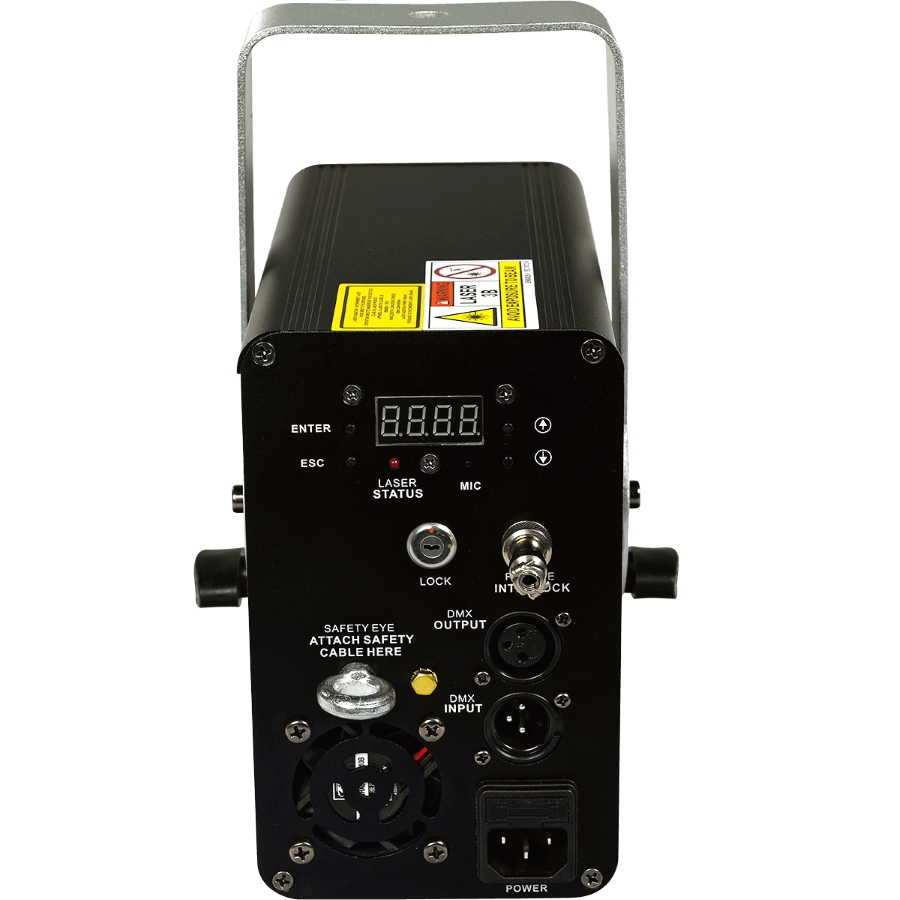 Lo SPECTRUM 400 RGB offre 3 laser (rosso, verde e blu) che possono essere modulati secondo necessità grazie a 128 effetti di animazione interni: tunnel, onde, motivi geometrici, grafici, ecc. I LASER possono essere sviluppati in modalità musica, automatica o DMX e sono disponibili 11 canali DMX. Questa apparecchiatura è destinata esclusivamente ad attività professionali di intrattenimento visuale.