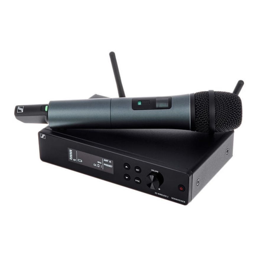 Sennheiser XSW 2-835 Vocal Set è un sistema microfonico wireless con trasmissione UHF composto da un trasmettitore a mano SKM-XSW35 con capsula dinamica E835 ed un ricevitore diversity EM-XSW2.